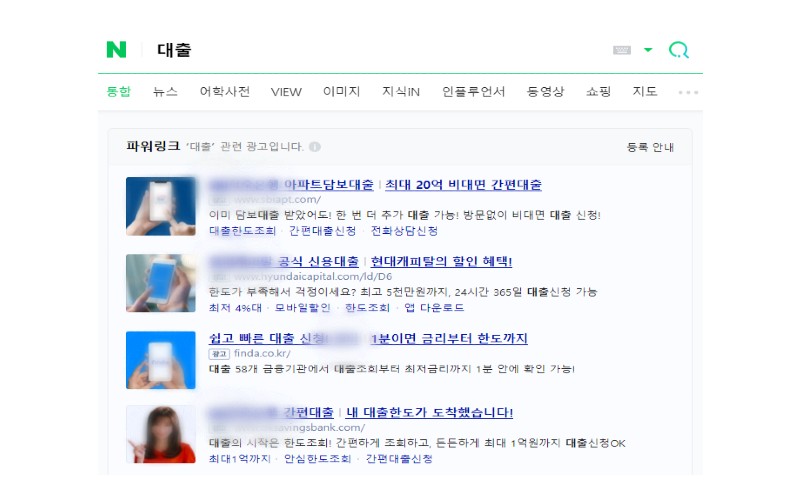 예시) 대출, 마스크, 포장이사 등 각 업종을 대표하는 키워드