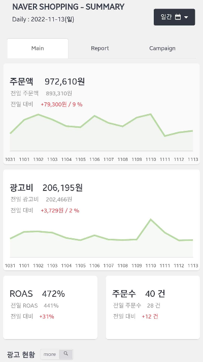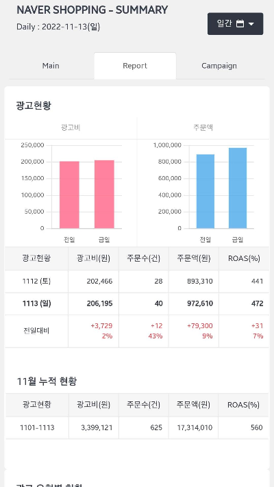 광고 집행 결과를 상세하게 확인할 수 있는 리포트